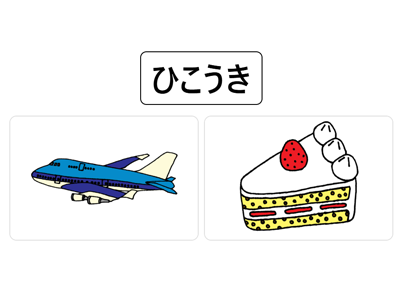 4 | かーどえらび | ![]() | 画面に表示された2枚の画像から、その名前を聞いて正しい画像を選ぶ課題です。上に名前が表示されますので自分で名前を読んで画像を選ぶ課題にもなります。カタカナへんかんすることで、カタカナの課題にすることもできます。 画像ファイルや課題にする名前は自分で用意することもできます。 https://school.gifu-net.ed.jp/cyuno-sns/public/aiueo/card.html |