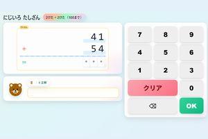 16 | 2けたのひっさん | ![]() | 2桁+2桁、2桁-2桁のひっ算を学習するためのアプリです。数字キーをタッチして答えを入力します。間違えると効果音とともに再入力となります。正解すると花吹雪と効果音が出て、次の問題に移ります。設定で足し算引き算の切り替え、繰り上がり下がりの有無を選択できます。答えが100までの範囲でランダムに出題されます。正解数がカウントされて表示されます。 https://school.gifu-net.ed.jp/cyuno-sns/public/hissan.html |