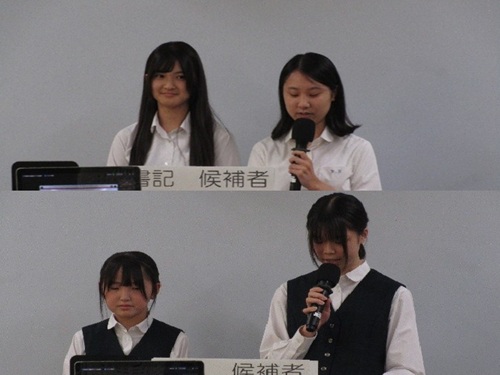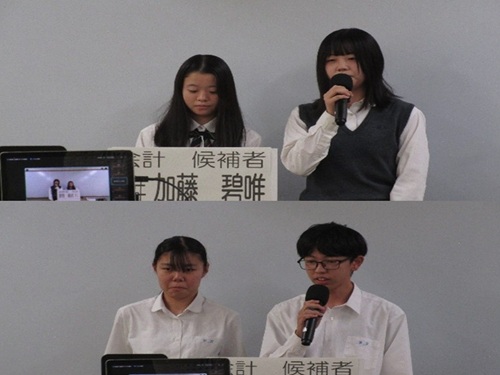 本日7限LHRの時間は、後期生徒会役員の立会演説会(Web)でした。立候補者、応援演説者ともに緊張しながらも、自分の思いをしっかりと語ってくれました。