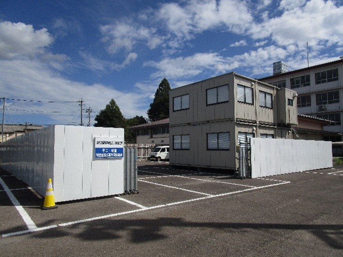 本校テニスコート横の駐車場内に工事現場事務所が建ちました。今年度、様々な工事が行われます。その中でも大きなものが、エアコン更新工事です。来年の5月くらいまでかかります。ご迷惑をお掛けします。ご理解とご協力を。