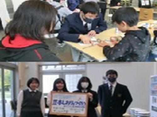 11月2日(日)に各務原市立中央図書館で開催された「ブックGO!図書館まつり」にて、青桜クラブ・図書委員・有志の計9名が「豆本しおり」のワークショップを行いました。親子連れからご年配の方まで80名以上の方にご参加いただき、大盛況でした。部活動や普段の学校生活について質問を受けることもあり、西高生の活躍をアピールする機会にもなりました。 |