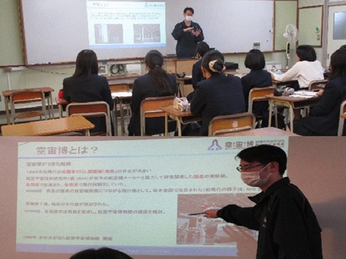 今回の放課後ミニ講演会は、岐阜かかみがはら航空宇宙博物館 学芸員 近藤飛翔さんをお招きし「岐阜かかみがはら航空宇宙博物館の魅力」ついて伺いました。とても楽しく、わかりやすく魅力を語っていただけました。 |