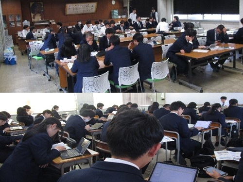 毎週火曜7限は、探究活動の時間です。それぞれテーマに基づき、仲間で意見を出しあったり、パワーポイントのスライド作成などをしている様子です。