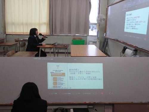 1年次の「総合的な探究の時間」では、一人ひとりが各務原市の課題に対して解決策を考える取組をしてきました。本日はクラスで選出された代表者がオンラインで発表会を行いました。 |