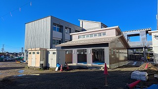 新校舎の建設は終盤に差し掛かっており、現在は建物の外装工事や周辺の舗装(アスファルト)工事が進行中です。12月上旬の完成を目指して、工事は順調に進んでおります。