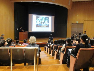 今回はウェブ会議システムを使用し、生徒は各教室で映像を通して参加しました。