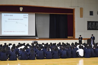 11月6日(木)に、3年生を対象に美濃加茂市選挙管理委員会の方々をお招きし、選挙についての出前講座を実施しました。