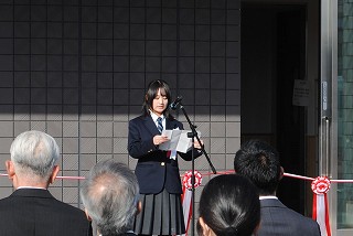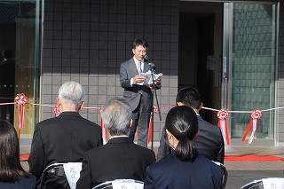 12月23日(火)14時より、本校新校舎の完成を記念し、「新校舎完成記念式典(竣工式)」を執り行いました。式典は新校舎正面玄関前で実施し、天候にも恵まれ、晴れやかな雰囲気の中で開催することができました。