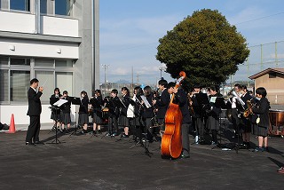 式の後半では、来賓および生徒代表によるテープカットが行われ、吹奏楽部の演奏が式典に華を添えました。新校舎の完成を象徴するこの場面は、出席者全員で新たな門出を祝う印象的な時間となりました。