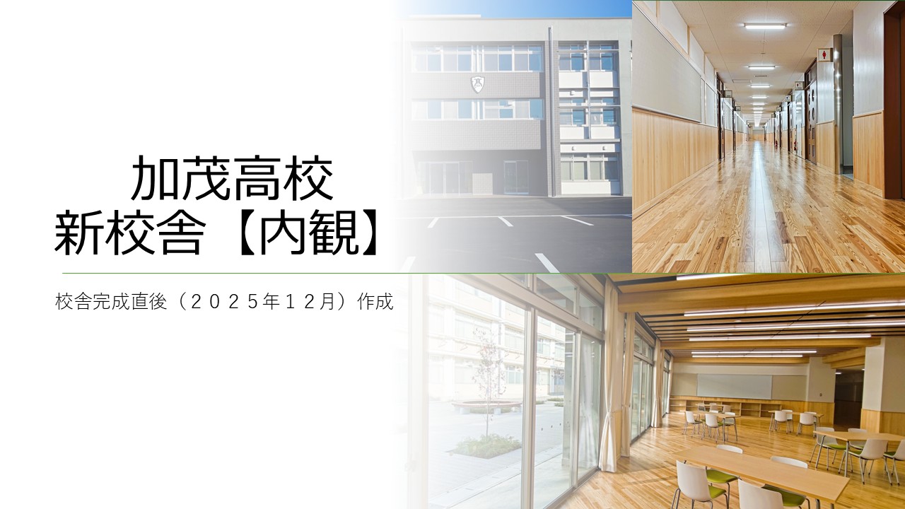 加茂高等学校新校舎の外観紹介と内観紹介の動画を「加茂高校【新校舎】の紹介ページ」に公開しました。
