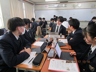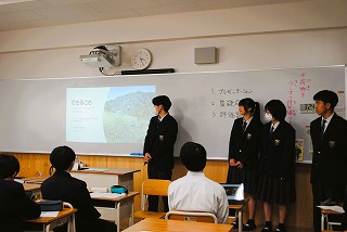 2月19日(木)、2年生普通科「総合的な探究の時間」における地域探究活動の中間発表会を実施しました。