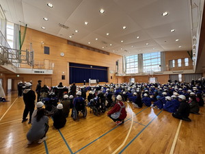 | 今回の命を守る訓練では、地震発生を想定し、初めて体育館への避難を行いました。 避難の途中にも緊急地震速報が鳴りましたが、児童生徒は落ち着いてダンゴムシポーズをとり、 安全を確保する姿勢ができていました。避難完了後、校長先生からは初めての避難先でも冷静に行動 できたことをほめていただき、冬休みに地震が多かったことから、今後も安全に気を付けて生活して いこうという話がありました。改めて災害に備える大切さを学ぶ機会となりました。 |