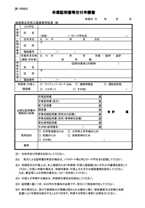 証明書交付申請書