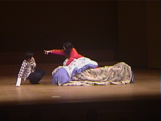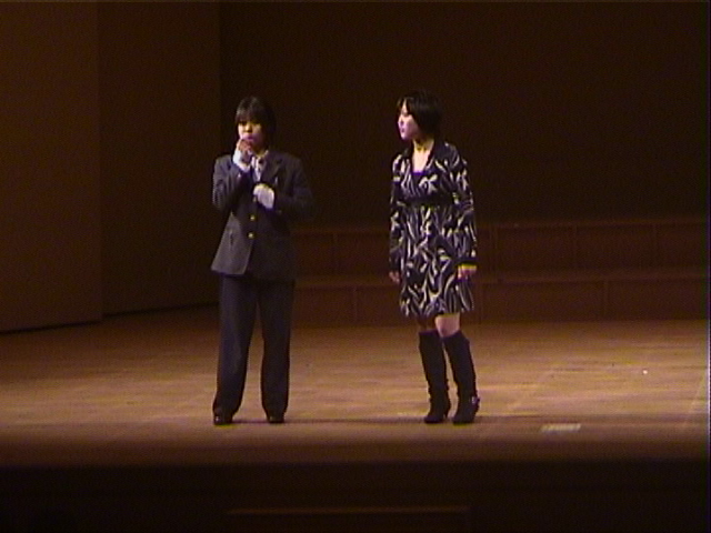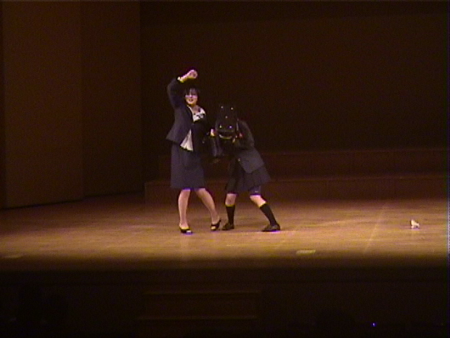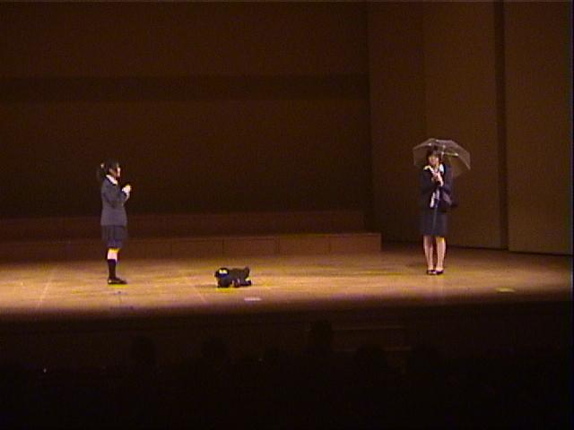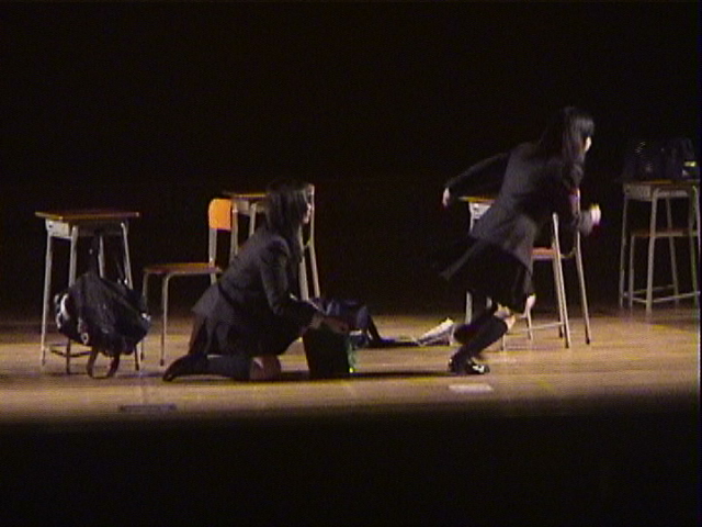 学園ホラー。最初の、女子高生の日常場面と、おしまいの場面とに落差をもたせることが作者の苦心した所です。主人公が机を倒す所は体を張った演技でした。
