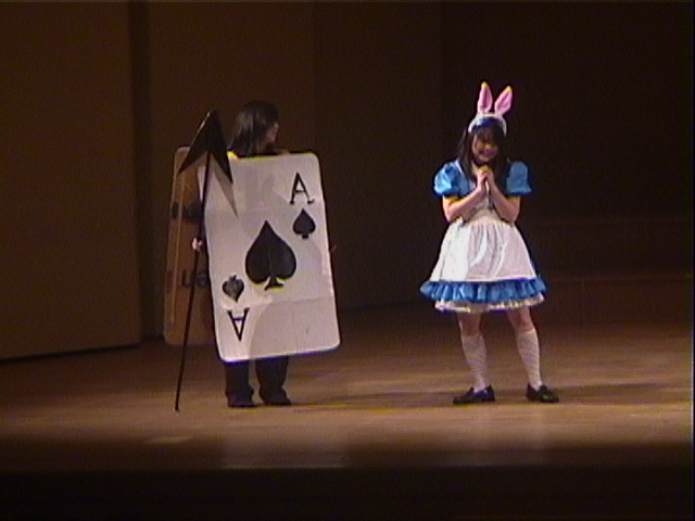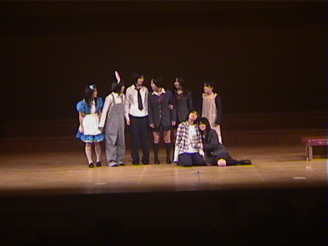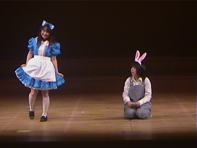 ファンタジー。高校演劇では定番と言える「アリス物」にチャレンジしてみました。衣装を手伝ってもらった(というよりほとんど作ってくださった)K先生、本当に感謝です。