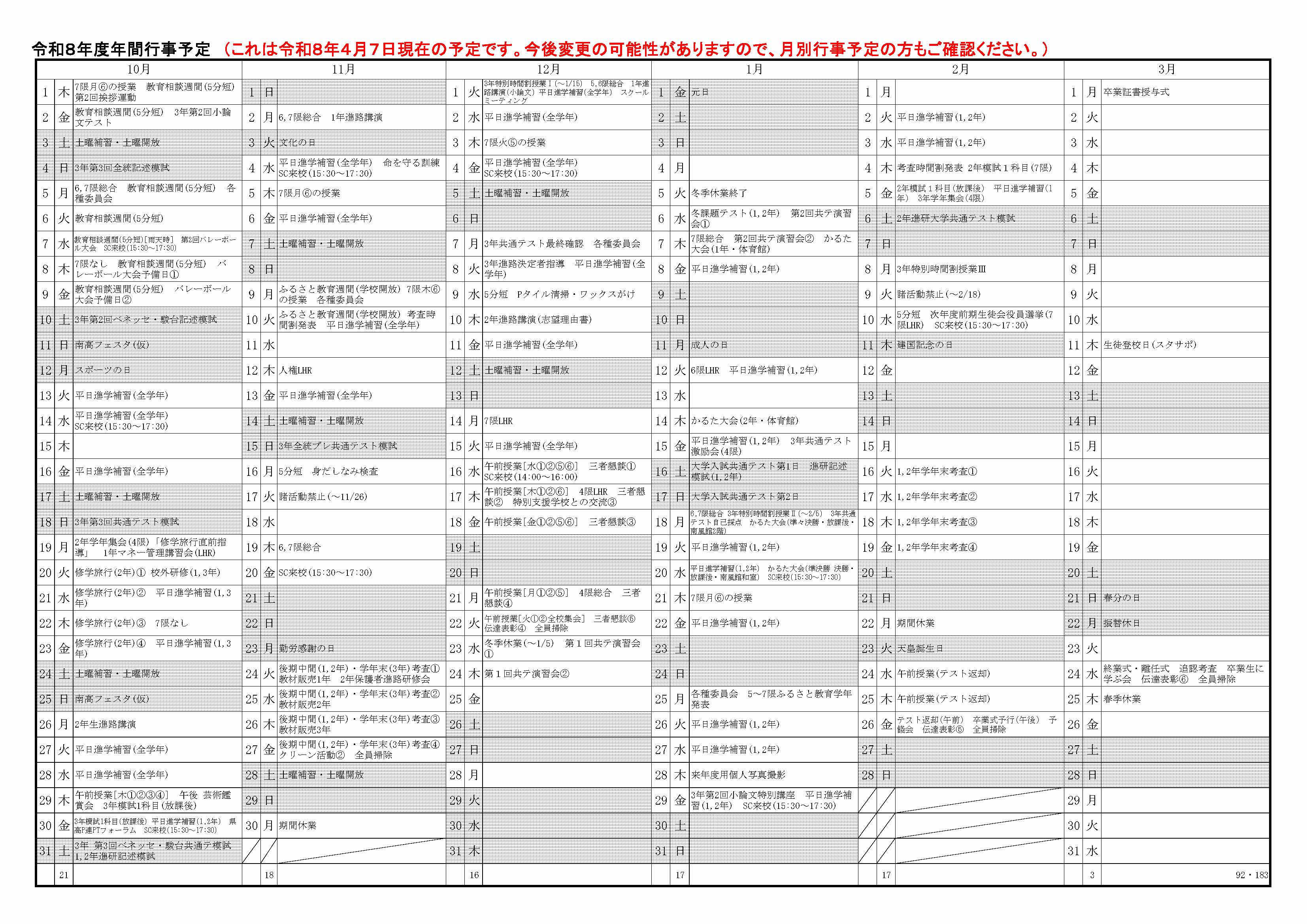2026.4.7 年間行事計画・4月〜9月(画像版)・10月〜3月(画像版)を掲載しました。