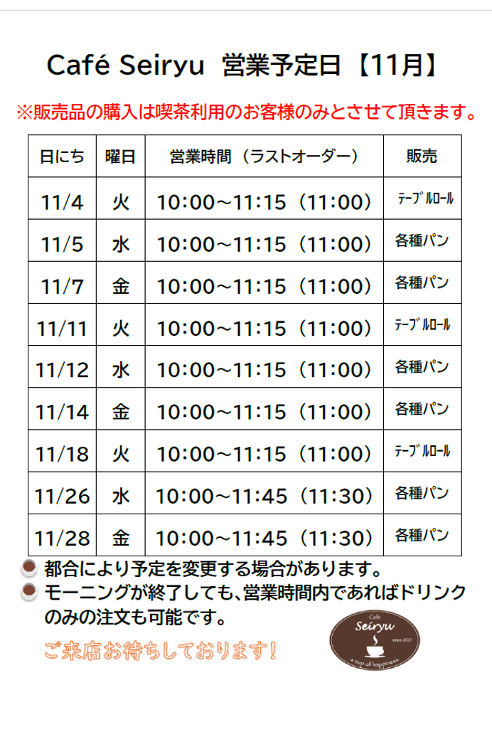 Café Seiryuテラス 10:00~11:30 |