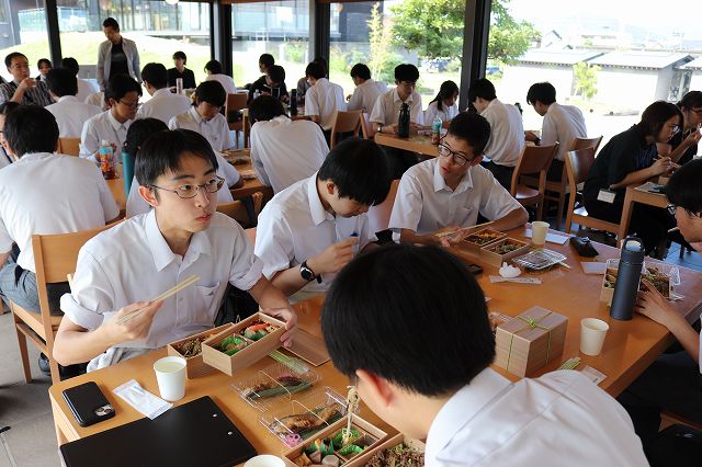昼食は鵜飼ミュージアムの東屋で、鮎の塩焼きを含む昼食を食べました。今後のSDGsの学習に今回の体験を生かせるように学習を継続します。