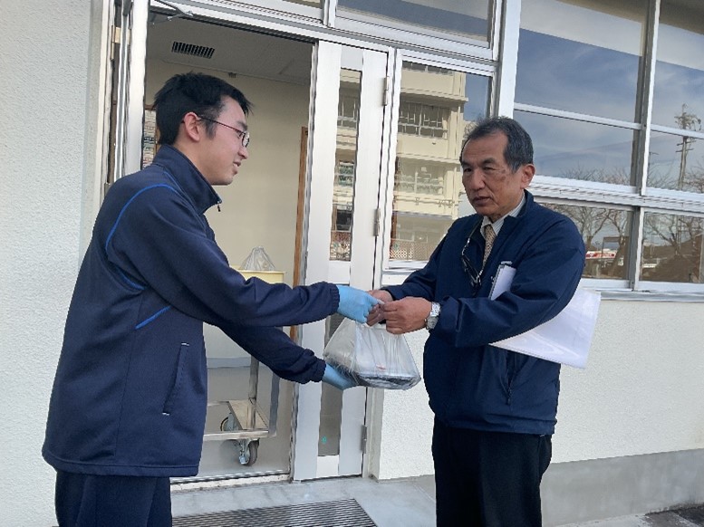 食品コースの生徒が通う自動車学校の校長先生が、清流弁当を購入されました。 生徒が自動車学校で、「食品コースの授業で作っている清流弁当をぜひ買いに来てください」と校長先生や指導員の方々にPRしたことがきっかけでした。 「おいしいお弁当、今後も楽しみにしています。これからも販売の時は、ぜひ買いに行きます。」とのことで、生徒たちもとても喜んでいました。 食品コース3年生は、今年度後期より清流弁当を外部の皆様に販売してきました。多くの方に弁当を購入していただき、「おいしかったよ」「また次のお弁当楽しみにしているよ」 「今度はこんな弁当が食べたいな」等、温かい言葉をたくさん掛けていただきました。食品コースの生徒たちは、お弁当を購入してくださる皆様の言葉を励みに、 日々の専門コースの活動に取り組むことができました。ありがとうございました。 |