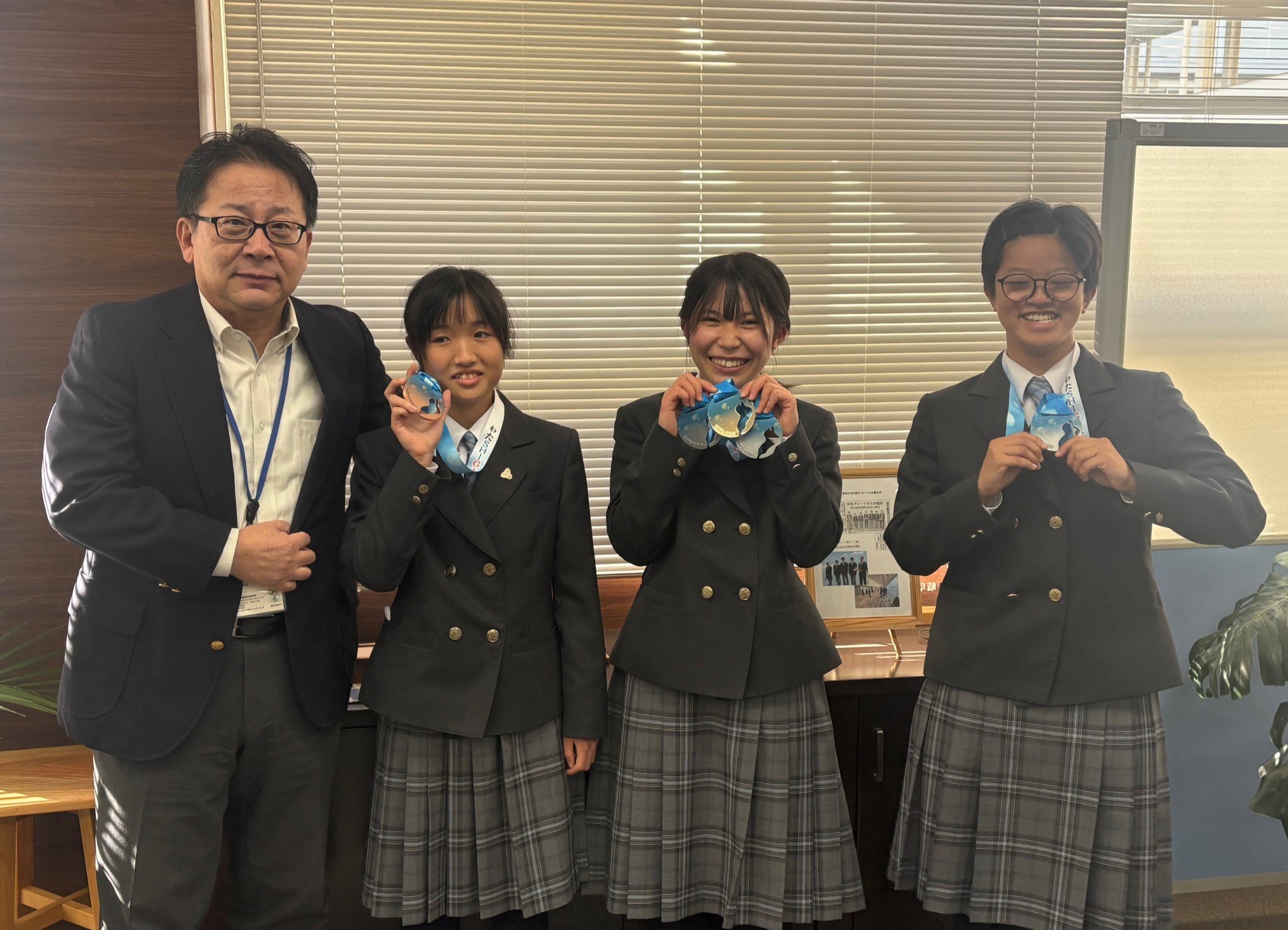 (その3)2025年10月25日(土)~27日(月)に行われた湖国の感動 未来へつなぐ わたSHIGA輝く 障スポ 2025において、本校ホームページで速報のとおり、各種目でメダルを獲得し大活躍した3人が笑顔で大会報告をしました。