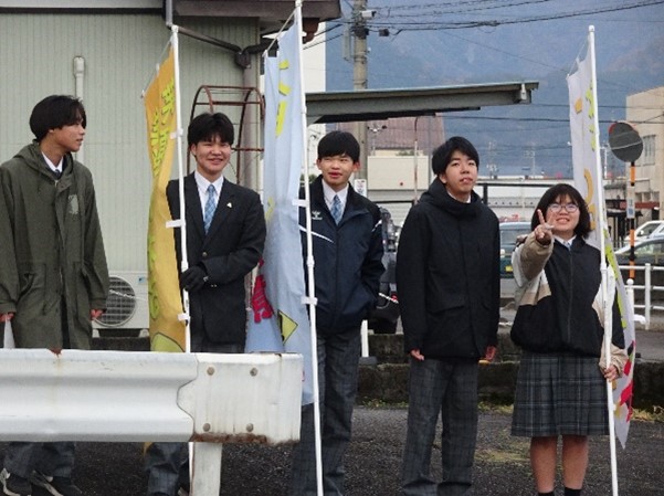 登校する生徒や地域の住民の方々に「おはようございます」と元気な挨拶をすることや、交通安全の呼びかけができました。