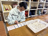 11月18日(火)にピアゴ多治見店へ行き、調理実習に向けて買い物学習を行いました。グループごとに必要な食材を確認し、担当の食材を探しました。マヨネーズとからしマヨネーズ、四角いハムと丸いハム等の種類の多い食材に戸惑いながらも、協力して探す姿がありました。