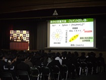 第1部は1,2年次生全クラスを対象とし、物理・化学・生物の代表3班が体育館のステージで口頭発表を行いました。