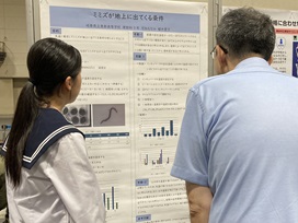 本校から「ミミズが地上に出てくる条件」の研究班が参加し、ポスター発表をしました。
