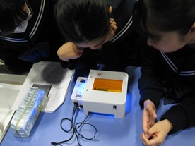 瑞浪市にあるサイエンスワールドにて、職員の方のご指導のもと、自分の口腔内の表皮細胞を用いた遺伝子配列の分析や、DNA型鑑定をもとにした科学捜査の手法の実験を行いました。