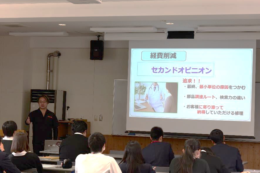 企業紹介㉘くるまの河田(R7/10/24) 投稿日時: 2025年10月24日 投稿者: 管理者 企業紹介第28回目はくるまの河田です。 今回は、岩村町のくるまの河田より河田文仁様にお越しいただき事業紹介をしていただきました。創業45年を迎え、自動車整備コンサルタントの資格を持ち、地元だけでなく全国の車を直す車屋です。 ”巡り巡ってきた車と向きあう”ことが仕事の使命だという河田様の仕事観のお話から、”作業と仕事とは”という問いを考える時間を通じて、来年から就職する生徒もいる中で、生徒自身が仕事について考える時間となりました。 河田様、本日はありがとうございました。