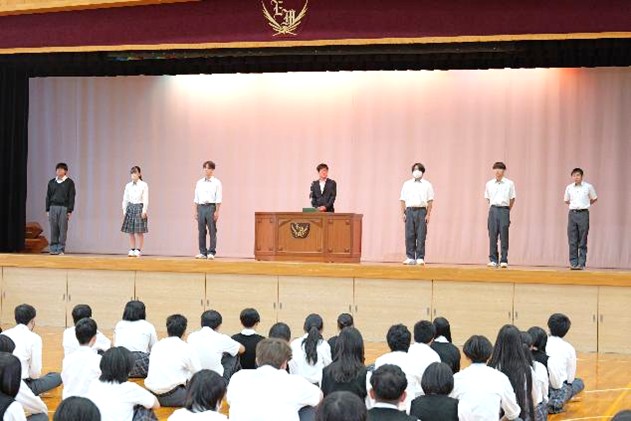 始業式、生徒会役員退任・認証式(R7/10/1)