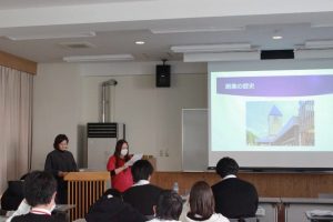 今回は、上矢作町の道の駅ラ・フォーレ福寿の里より丸山様と松田様に事業紹介をしていただきました。道の駅ラ・フォーレは、コテージ、ロッジ、モンゴル村の三つの宿泊施設があり、泊まれる道の駅となっています。また特色として、上矢作の特産品でもある、トマトを使った道の駅でもあり、トマトを使った食事が多く提供されています。