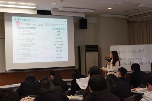 1年次の産業社会と人間において、金融リテラシー向上コンソーシアム様をお招きしてライフプランニングや家計管理について学びました。講義ではグループワークを中心に、人生の様々なライフイベントに関する費用を理解しながら、収支と支出のバランスを把握した家計管理の重要性について学ぶことが出来ました。