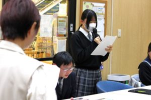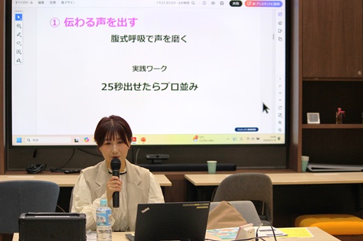 恵那市在住のタレント・フリーアナウンサーの西村知穂さんによるプレゼン講座が開催され、本校生徒3名が参加しました。発声の仕方やアクセントの付け方、印象に残る話し方などについて専門的な指導を受けることが出来ました。
