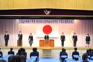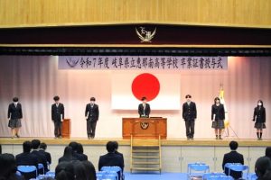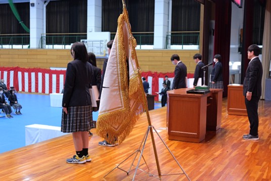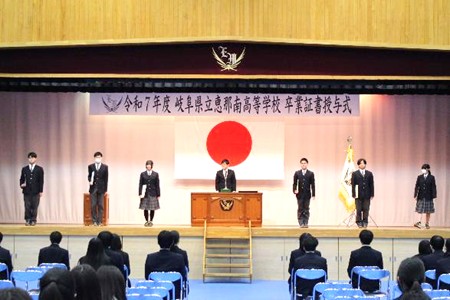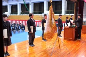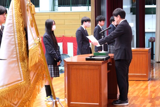 令和7年度の外部団体表彰6名と、校内特別表彰において部活動で全国大会へ出場したギター・マンドリン部の6名を表彰しました。