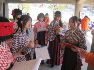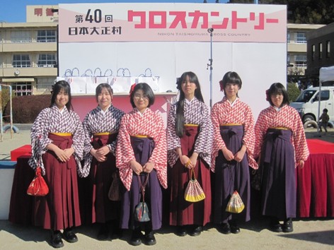 日本大正村クロスカントリー (R8/3/15) 投稿日時: 2026年3月16日 投稿者: 管理者 第40回日本大正村クロスカントリーが開催されました。快晴の暖かい日となり、北海道や沖縄、海外など、遠方からの参加者や仮想をしての参加など、1,600人以上のランナーの皆さんが、それぞれに楽しんで参加されていました。。 隣接する明智小学校のグラウンドで開催された開会式、オープニングのアトラクションとゴール地点で、吹奏楽部が演奏させていただきました。また、ボランティアで参加した生徒たちも矢絣を着て各表彰等の介添えなどでお手伝いさせていただきました。