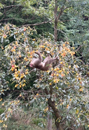 校舎南の柿を採りに来ましたが、渋柿だったためすぐに帰りました。