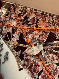 お化け屋敷を作る時に工夫したことは、外観の雰囲気をこだわり、お化け屋敷の中の光を遮断して怖い雰囲気を作ることと聞きました。