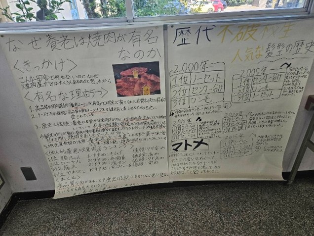 歴史・地域の探究では、「なぜ養老は焼肉が有名なのか」や「真弾院・南宮大社の歴史」や
