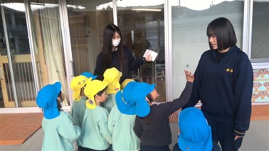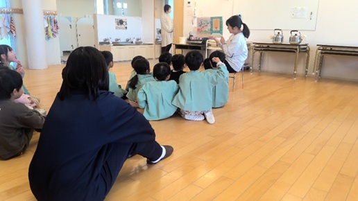 生徒が考えた遊びである「しっぽとり」や、読み聞かせを体験しました。