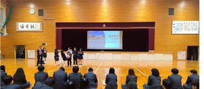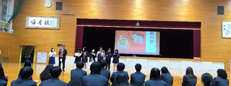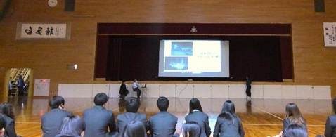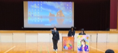 体育館で実演したり、スクリーンに映したり、作品をみせるなどして、力のこもった紹介がありました。