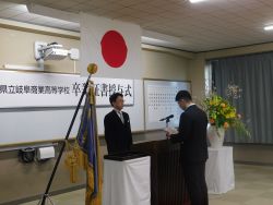 表彰式では、これまでの学校生活で優秀な成績を修めた生徒に表彰状が送られました。また、卒業式は厳粛な雰囲気の中、全員が整然とした態度で式に臨みました。