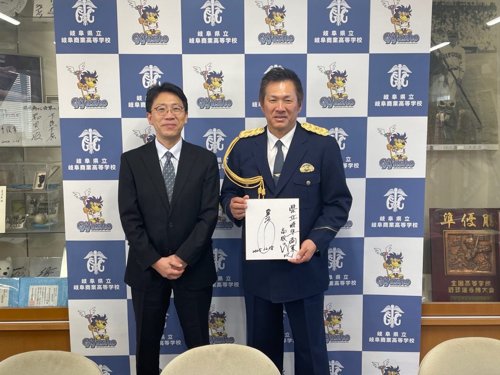 令和7年12月18日(木)6限に岐阜県警察本部と本日一日警察署長を務める元プロ野球選手の山﨑武司様をお招きし、全校生徒を対象に交通安全講話を行いました。来年度、令和8年4月1日より自転車の交通違反に反則金が課せられることなどをとても分かりやすく説明していただきました。また、山﨑様からは高校在学時やプロ野球選手時代にどのように困難を乗り越えてきたかなど、生徒たちに熱く語っていただきました。