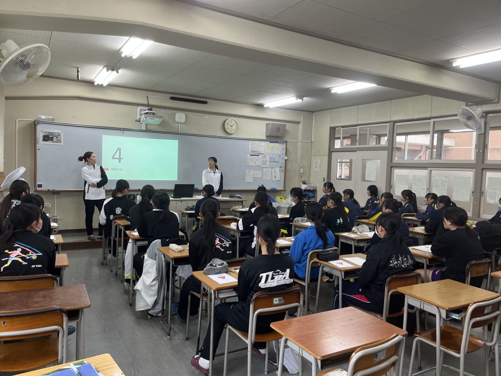 2/6(金)放課後、バドミントンプロチームの岐阜bluvicによる女子選手に向けた講習会を実施しました。現役選手が講師となり、競技経験に基づく女性アスリート特有の問題について詳しくお話いただきました。講習会の最後にはフランクに意見交換がなされ、自身の健康と競技への向き合い方を見直すきっかけとなりました。