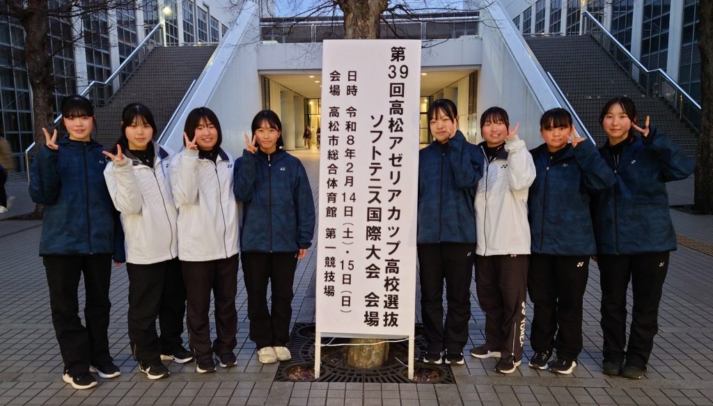 2月14日(土)・15日(日)「第39回高松アゼリアカップ高校選抜ソフトテニス国際大会」が香川県高松市の高松市総合体育館で行われました。この大会は、全日本高校選抜大会の各ブロック予選で上位に入賞したチーム(東海ブロックは三重高校と本校)と台湾チームで行われる非常にレベルの高い試合でした。