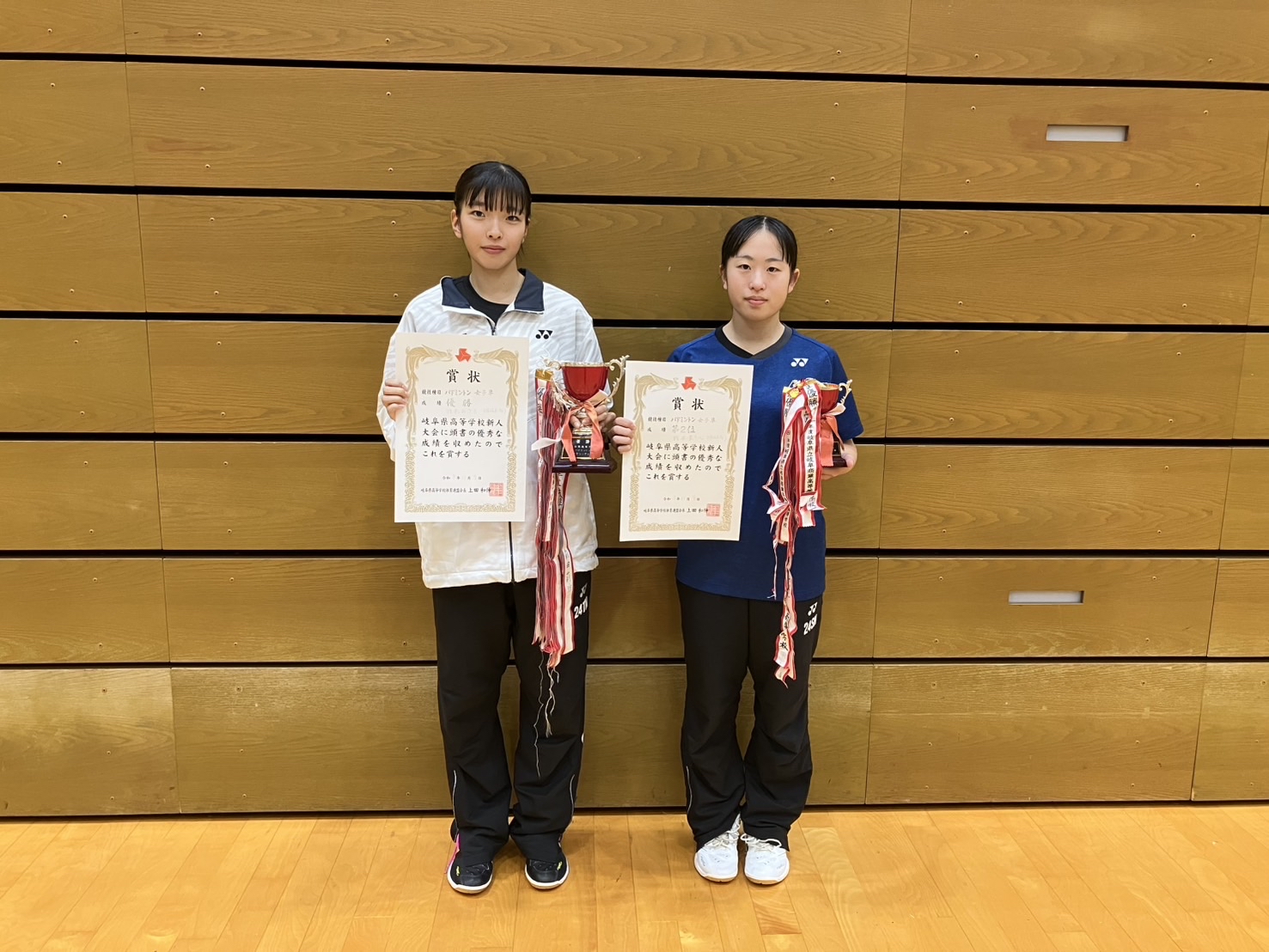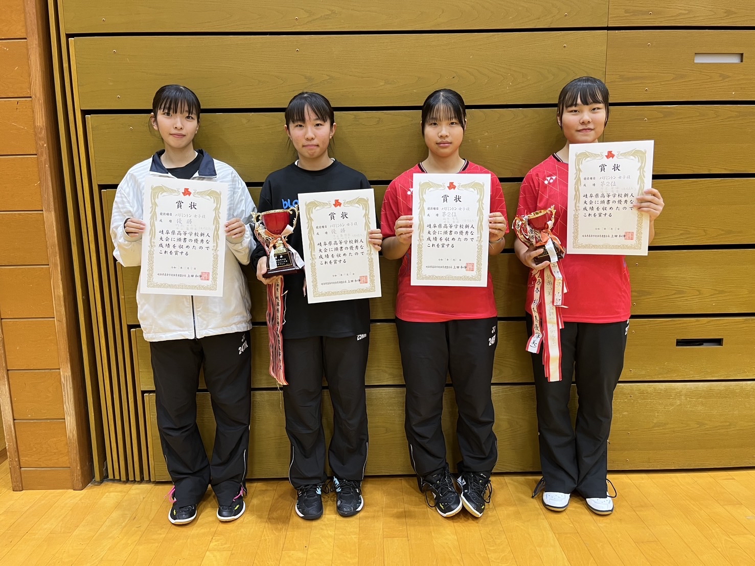 11/8~9にかけて飛騨高山ビッグアリーナにて行われました、県新人大会(個人)において、男女シングルス、男女ダブルスの4種別で優勝し、個人4種別制覇を達成しました。なお、4種別ともに準優勝は県岐阜商生であり、12月に大垣市にて行われる東海高校選抜大会個人出場権8枠を全て獲得しました。今後とも応援よろしくお願いします。