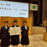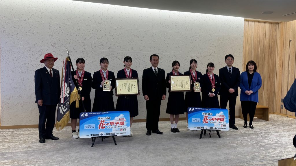 「Ikenobo 花の甲子園 2025 全国大会」で優勝した茶華道部の「花むすび」が、2月13日に令和7年度「岐阜県文化・スポーツ栄誉賞」を受賞しました。この受賞は、日頃の研鑽とチームの高い表現力が認められたものです。