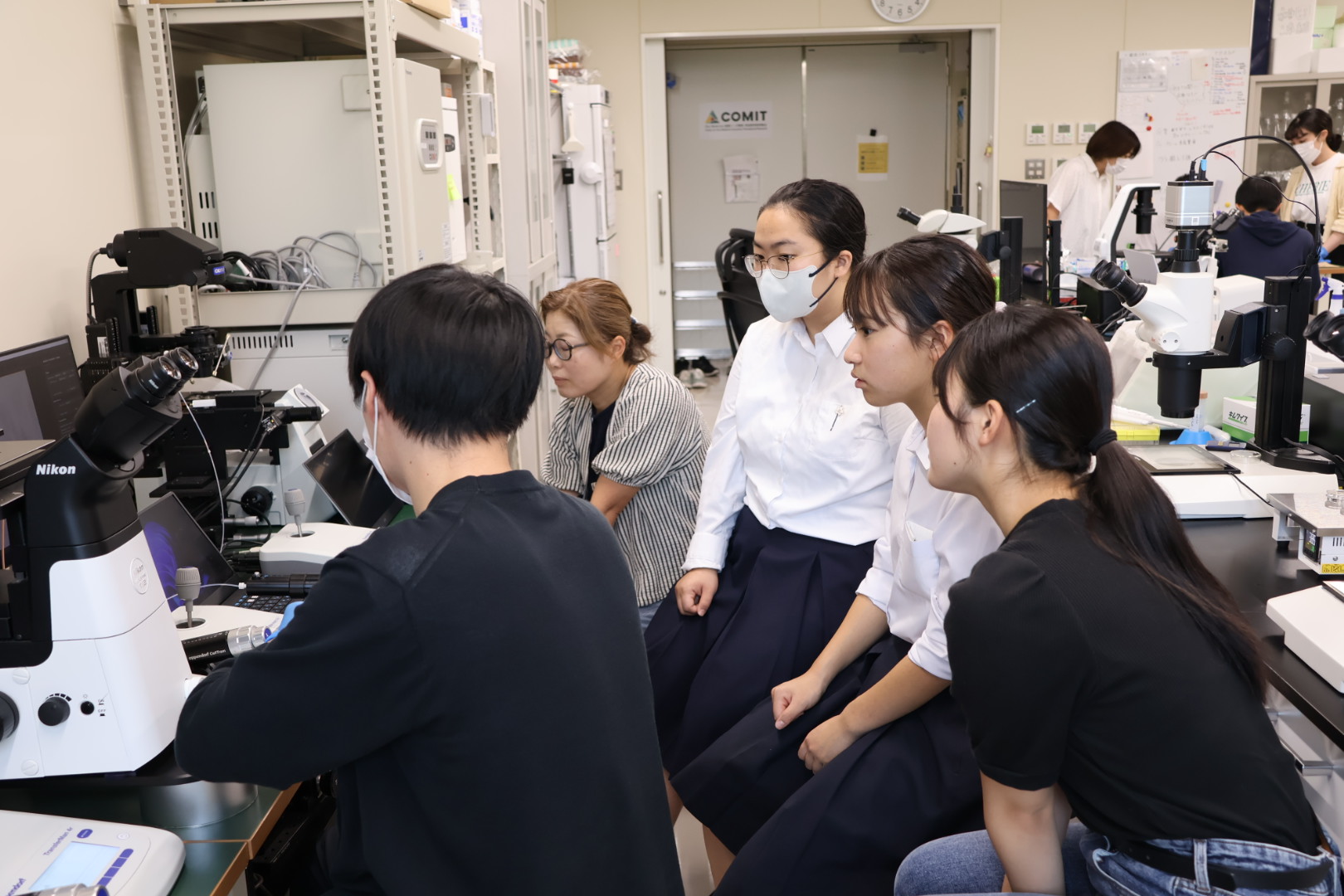 1、2年生にはまだ習ったことのない高度な内容だったため、難しく感じる部分もありましたが、3年生の生物選択者には、学習した内容がまさに目の前にあるため、目を輝かせながら非常に楽しんで実習に取り組んでいました。多くの生徒にとって、進学先の将来像を思い浮かべる良い経験となりました。