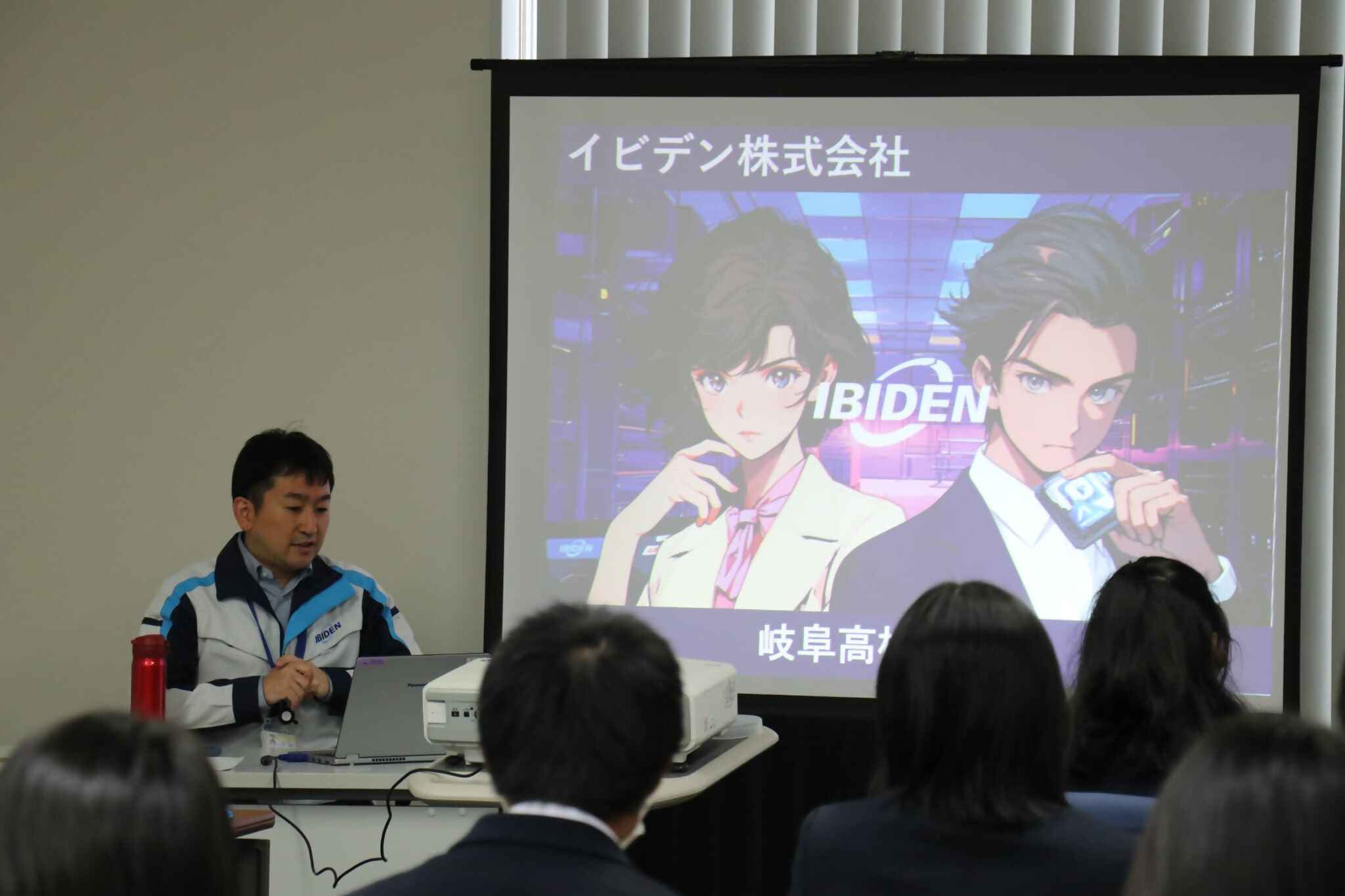 初めに同社人事部の岡村様より、イビデンの歴史と事業紹介、次に見学する半導体パッケージに関する説明がありました。他に、ご自身のアメリカ海外赴任経験を基にして、文系・理系ともに活躍できる仕事内容やアメリカでの営業に関する話がありました。