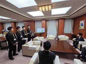 12月5日、本校2年次生のチーム岐阜高校アグリ班(鈴木一功さん、熊木康太さん、児島颯悟さん、小椋康平さん)が、政策甲子園で最優秀賞を受賞したことを受け、農林水産省を訪問しました。